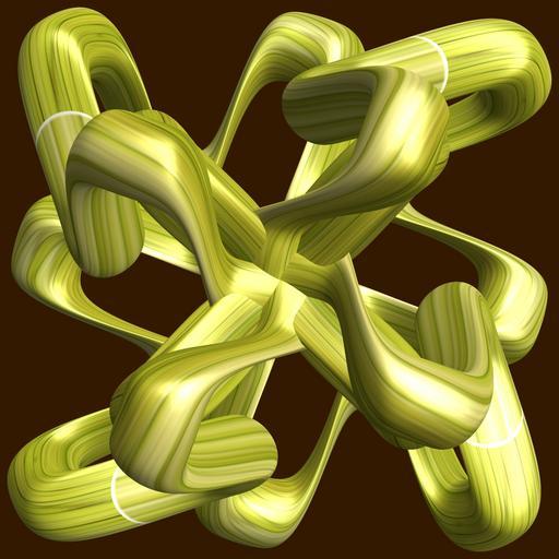 Keywords: mathematica 3d cg parametricplot3d texture torus 輪環 りんかん ドーナツ どーなつ 四芒星 しぼうせい 四光星 しこうせい 四稜星 しりょうせい code program algorithm コード プログラム アルゴリズム geometric sculpture geometricsculpture shape geometry sculpture mapping テクスチャ マッピング 模様 もよう abstract 抽象 ちゅうしょう アブストラクト design pattern デザイン パターン graphic グラフィック グラフィクス structure 意匠 構造 symmetry 対称性 たいしょうせい シンメトリー 対称 たいしょう algorithm コード indoor black background a = 4; (* center hole size *) b = 4; (* tetra-torus *) c = 2; (* distance from the center of rotation *) d = 4; (* number of torus *) h = 2; (* height of a torus *) SetOptions[ParametricPlot3D, PlotRange -> Full, Mesh -> None, Boxed -> False, Axes -> False, PlotPoints -> 400, ImageSize -> 3000, Background -> Darker[Orange, 0.8], PlotStyle -> Directive[Specularity[White, 30], Texture[Import["D:/tmp/71.jpg"]]], TextureCoordinateFunction -> ({#4 + #5, #5 / Pi} &), Lighting -> "Neutral"]; f[v_] := Sin[2 Sin[Sin[Sin[v]]]]; x = (a - Cos[t] - f[b s]) Cos[s] + c; y = (a - Cos[t] - f[b s]) Sin[s] + c; z = (a - Sin[t] - h f[b s]); rot = Table[{x, y, z}.RotationMatrix[2 i Pi/d, {0, 2, 1}], {i, d}]; ParametricPlot3D[rot, {t, 0, 2 Pi}, {s, 0, 2 Pi}] (*--- The Texture is this: www.flickr.com/photos/tanaka_juuyoh/5239255695/ *) a = 4; (* center hole size *) b = 4; (* tetra-torus *) c = 2; (* distance from the center of rotation *) d = 4; (* number of torus *) h = 2; (* height of a torus *) SetOptions[ParametricPlot3D, PlotRange -> Full, Mesh -> None, Boxed -> False, Axes -> False, PlotPoints -> 400, ImageSize -> 3000, Background -> Darker[Orange, 0.8], PlotStyle -> Directive[Specularity[White, 30], Texture[Import["D:/tmp/71.jpg"]]], TextureCoordinateFunction -> ({#4 + #5, #5 / Pi} &), Lighting -> "Neutral"]; f[v_] := Sin[2 Sin[Sin[Sin[v]]]]; x = (a - Cos[t] - f[b s]) Cos[s] + c; y = (a - Cos[t] - f[b s]) Sin[s] + c; z = (a - Sin[t] - h f[b s]); rot = Table[{x, y, z}.RotationMatrix[2 i Pi/d, {0, 2, 1}], {i, d}]; ParametricPlot3D[rot, {t, 0, 2 Pi}, {s, 0, 2 Pi}] (*--- The Texture is this: www.flickr.com/photos/tanaka_juuyoh/5239255695/ *) |