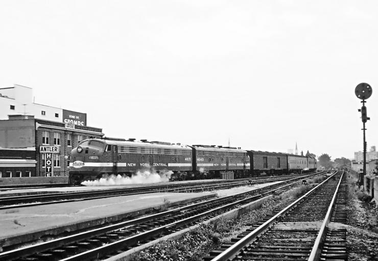 | Keywords: blackandwhite monochrome train vehicle railroad locomotive sport outdoor infrastructure building structure building architecture black and white NYC 4071 and 4042 (E8As) with Train 15, The Ohio State Limited arriving at Dayton, Ohio Union Station on September 15, 1967. The color in this slide was so bad I made the photo B&amp;W. The deterioration still shows through. NYC 4071 and 4042 (E8As) with Train 15, The Ohio State Limited arriving at Dayton, Ohio Union Station on September 15, 1967. The color in this slide was so bad I made the photo B&W. The deterioration still shows through. NYC 4071 and 4042 (E8As) with Train 15, <i>The Ohio State Limited </i>arriving at Dayton, Ohio Union Station on September 15, 1967. The color in this slide was so bad I made the photo B&W. The deterioration still shows through. The Ohio State Limited arriving at Dayton Union Station, September 1967.jpg en NYC 4071 and 4042 E8As with Train 15 the Ohio State Limited arriving at Dayton Ohio Union Station on September 15 1967 1967-09-15 Roger Puta https //www flickr com/photos/129679309 N05/27681634306/ User Fæ/Flickr API RogerPuta Photos uploaded from Flickr by Fæ using a script Ohio State Limited Union Station Dayton Ohio 1967 in Ohio 1967 in rail transport in the United States EMD E8 locomotives of the New York Central Railroad |