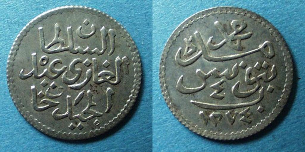 Keywords: 4 Tunisian Para - 1274 AH.jpg en 4 Tunisian Para coin struck in Tunis in 1274 AH during the reign of Muhammad II Bey own DrFO Jr Tn 2010 Tunisian rial coins