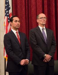 Keywords: 4E8A9012 (14772452962).jpg 28 July 2014 - Washington DC - Secretary of Labor Thomas Perez attended the Congressional Hispanic Caucus Institute CHCI Event celebrating Latino Cabinet members Also on hand was HUD Secretary Julian Castro; SBA Administrator Maria Contreras-Sweet; OPM Director Katherine Archuleta; Senator Robert Menedez; Representative Ruben Hinojosa; and CHCI President Esther Aguilera Official Department of Labor Photograph This official Department of Labor photograph is being made available only for publication by news organizations and/or for personal use printing by the subject s of the photograph The photograph may not be manipulated in any way and may not be used in commercial or political materials advertisements emails products and/or promotions that in any way suggest approval or endorsement of the Secretary or the Department of Labor Photo Credit Department of Labor https //www flickr com/photos/usdol/14772452962/ 4E8A9012 2014-07-28 20 12 https //www flickr com/people/52862363 N07 US Department of Labor PD-USGov US Department of Labor https //flickr com/photos/52862363 N07/14772452962 2016-09-06 06 16 42 United States Government Work Thomas Perez in 2014 Julian Castro |