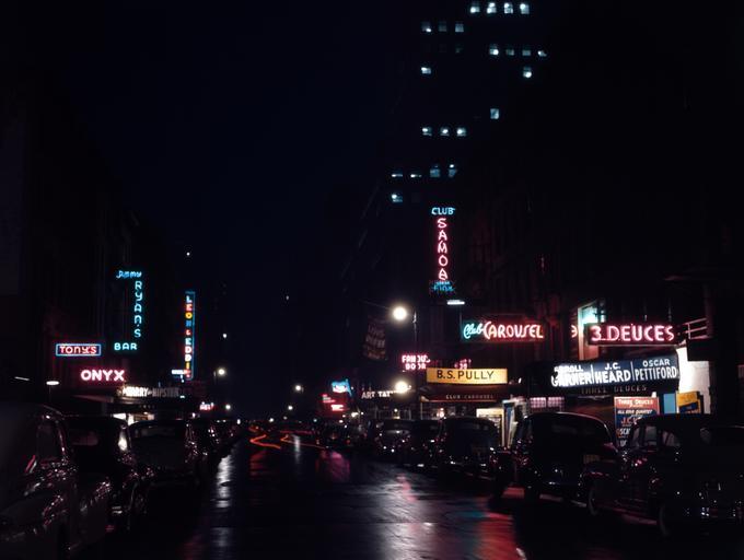 | Keywords: 52nd Street, New York, by Gottlieb, 1948.jpg Kodachrome transparency of en 52nd Street Manhattan <br> Per http //www flickr com/photos/library_of_congress/4843118849/ Liefbop This photo is from around May 20 1948 Harry the Hipster closed at the Onyx in the second half of May Jazz Names Start Street Revival As 2 Ops Nix Girls Down Beat June 2 1948 1 Erroll Garner opened at the Three Deuces c May 20 Goings on About Town New Yorker May 22 1948 Famous Door reopened with Art Tatum on May 7 Music “As Written Billboard May 8 1948 28 William P Gottlieb Collection Library of Congress 1948-05 Creator William P Gottlieb http //hdl loc gov/loc music/gottlieb 11171 <br> http //www flickr com/photos/library_of_congress/4843118849/ 40 45 40 N 73 58 45 5 W heading SEbE cropped black white level adjustments PD-Gottlieb 52nd Street Manhattan 1948 in New York City Nightclubs in New York City Night in New York City Neon signs in New York City Jazz venues in New York City ImageNote 1 3205 2081 287 276 4391 3307 2 en Errol Garner ImageNoteEnd 1 ImageNote 2 3492 2048 248 331 4391 3307 2 en J C Heard ImageNoteEnd 2 ImageNote 3 3751 2065 314 226 4391 3307 2 en Oscar Pettiford ImageNoteEnd 3 ImageNote 4 2466 2131 590 177 4391 3307 2 en B S Pully ImageNoteEnd 4 ImageNote 5 2085 2208 303 232 4391 3307 2 en Art Tatum ImageNoteEnd 5 ImageNote 6 706 2247 430 177 4391 3307 2 Harry the Hipster ImageNoteEnd 6 |