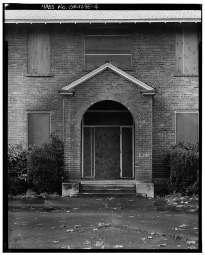 | Keywords: 5495 Chugath Street Winona Hall - detail of brick entry porch - Chemawa Indian School - Salem Oregon.jpg en Chemawa Indian School Winowa Hall 5495 Chugach Street Northeast Salem Marion County OR CALL NUMBER HABS ORE 24-SAL 1E- NOTE Survey number HABS OR-129-E DIGID http //hdl loc gov/loc pnp/hhh or0044 CONTROL OR0044 LOC card text 5495 Chugach St N E Red brick on concrete foundations with wooden trim built around central Courtyard with rear wing 112' fourteen-bay front x 132' with 42' x 28' wing two stories hip roof one bay entrance porch with gable roof and arched opening; dormitory pressed metal ceilings Built 1923 during period of major expansion; numerous interior alterations n d ; demolished 1978 4 ext photos 1977 3 int photos 1977 Also see Chemawa Indian School OR-129 Card prepared 1979 Library of Congress Steve Viale 1977-10 OR-129-C Chemawa Indian School |