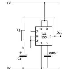 Keywords: 555 Mini Astable Diagram.svg Circuit Diagram of a 555 Astable with Minimal Components Own drawing made in Inkscape 0 43 2006-06-24 jjbeard PD 555 timer IC Astable circuits