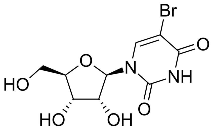 MAKE A MEME View Large Image 5-Bromouridine.svg Chemical structure of 5-Bromouridine 5-Bromouracil ribonucleoside; 1-β-Ribofuranosyl-5-bromo-uracil; 5-Bromouridin; BrUrd Own 16 16 6 November 2012 UTC Ed Edgar181 200px Pyrimidine nucleosides Bromoaromatics Haworth ...