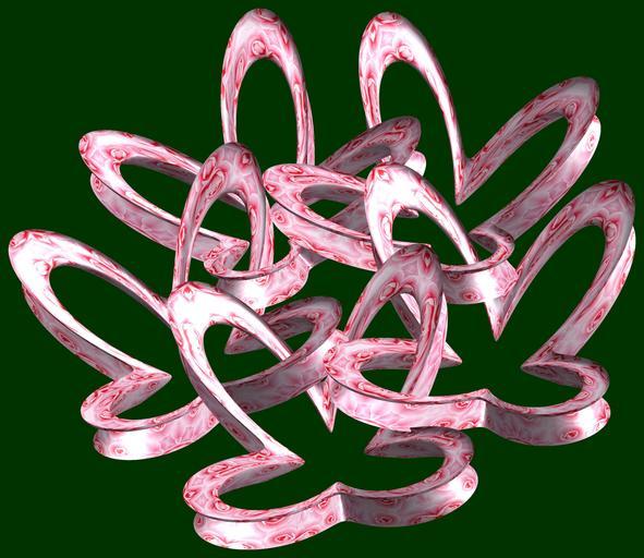 Keywords: mathematica 3d cg parametricplot3d texture torus 輪環 りんかん ドーナツ どーなつ 四芒星 しぼうせい 四光星 しこうせい 四稜星 しりょうせい code program algorithm コード プログラム アルゴリズム geometric sculpture geometricsculpture shape geometry sculpture mapping テクスチャ マッピング 模様 もよう abstract 抽象 ちゅうしょう アブストラクト design pattern デザイン パターン graphic グラフィック グラフィクス structure 意匠 構造 symmetry 対称性 たいしょうせい シンメトリー 対称 たいしょう algorithm コード text organic pattern bright black background outdoor a = 2; (* center hole size of a torus *) b = 4; (* tetra-torus *) c = 2; (* distance from the center of rotation *) d = 5; (* number of torus *) h = 1; (* height of a torus *) SetOptions[ParametricPlot3D, PlotRange -> Full, Mesh -> None, Boxed -> False, Axes -> False, PlotPoints -> 400, ImageSize -> 3000, Background -> Darker[Green, 0.8], PlotStyle -> Directive[Specularity[White, 30], Texture[Import["D:/tmp/86.jpg"]]], TextureCoordinateFunction -> ({#4, #5 2 Pi} &), Lighting -> "Neutral"]; f[v_] := Cos[2 Cos[Cos[Cos[v]]]]; x = (a - f[t] - Sin[b s]) Cos[s + 3 Pi/(4 b)] + c; y = (a - f[t] - Sin[b s]) Sin[s + 3 Pi/(4 b)] + c; z = (a - Sin[t/2] - h Sin[b s]); rot = Table[{x, y, z}.RotationMatrix[2 i Pi/d, {0, 0, 1}], {i, d}]; ParametricPlot3D[rot, {t, 0, 2 Pi}, {s, 0, 2 Pi}] (*--- The Texture *) a = 2; (* center hole size of a torus *) b = 4; (* tetra-torus *) c = 2; (* distance from the center of rotation *) d = 5; (* number of torus *) h = 1; (* height of a torus *) SetOptions[ParametricPlot3D, PlotRange -> Full, Mesh -> None, Boxed -> False, Axes -> False, PlotPoints -> 400, ImageSize -> 3000, Background -> Darker[Green, 0.8], PlotStyle -> Directive[Specularity[White, 30], Texture[Import["D:/tmp/86.jpg"]]], TextureCoordinateFunction -> ({#4, #5 2 Pi} &), Lighting -> "Neutral"]; f[v_] := Cos[2 Cos[Cos[Cos[v]]]]; x = (a - f[t] - Sin[b s]) Cos[s + 3 Pi/(4 b)] + c; y = (a - f[t] - Sin[b s]) Sin[s + 3 Pi/(4 b)] + c; z = (a - Sin[t/2] - h Sin[b s]); rot = Table[{x, y, z}.RotationMatrix[2 i Pi/d, {0, 0, 1}], {i, d}]; ParametricPlot3D[rot, {t, 0, 2 Pi}, {s, 0, 2 Pi}] (*--- The Texture *) |