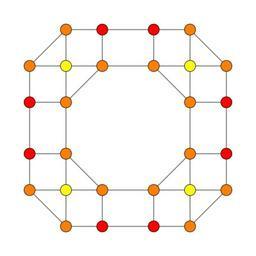 Keywords: 5-cube t014 B2.svg en 5-cube family graph in B2 en Coxeter plane own 10/11/10 self Set of colored Coxeter plane graphs; 28 vertices