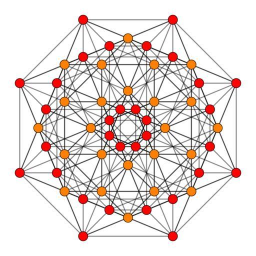 Keywords: 5-cube t2 B4.svg en 5-cube family graph in B4 en Coxeter plane own 10/11/10 self Set of colored Coxeter plane graphs red orange yellow green vertices