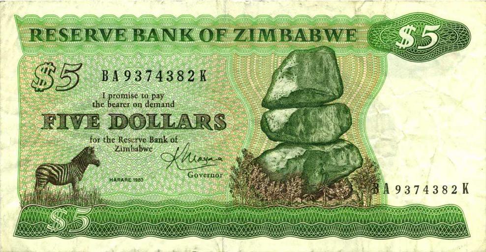 Keywords: 5 dollars du Zimbabwe, 1983.jpg en 5 dollars du Zimbabwe 1983 2013-12-19 11 32 50 http //www cgb fr/5-dollars-zimbabwe-1983-p-02c b52_1716 a html cgb cc-by-sa-3 0 PD-ZW-currency Uploaded with UploadWizard Banknotes of Zimbabwe 1980-1994 Green banknotes of Zimbabwe Banknotes with a face value of 5 Zebras on banknotes |