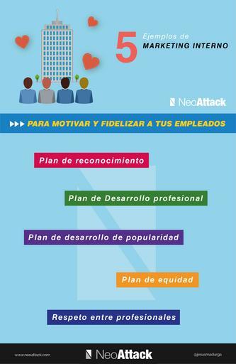 | Keywords: marketing interno ejemplos recursos humanos rrhh empleados trabajadores trabajar empresa negocios rentabilidad text screenshot outdoor neoattack.com/marketing-interno-todo-lo-que-necesitas-saber/ Ejemplos de planes/acciones de marketing interno Algunos ejemplos de planes de marketing interno en empresas son: Plan de reconocimiento: Ser considerado en función de los resultados obtenidos. Si implantamos un plan de reconocimientos en que se premie el esfuerzo y la valía de los trabajadores conseguiremos una mayor implicación con la empresa por parte de estos y esto repercutirá directamente en una mejora de su rendimiento y actitud tanto internamente como de cara al resto de usuarios. Plan de Desarrollo profesional: Aprender para enriquecer, desarrollarse y esperar los resultados. Si conseguimos el desarrollo profesional de nuestros trabajadores estos se sentirán más ligados a la empresa, verán un plan de futuro en ella y se verán más motivados, lo que repercutirá directamente en los resultados y en su actitud de cara a los clientes. Plan de desarrollo de popularidad: Desarrollar y conseguir mejorar el aprecio del producto de cara a nuestros empleados hará que lo conozcan mejor y estén en mejor disposición de de dar a conocer las bondades de éste al público en general. Plan de equidad: Una nueva remuneración justa y estimulante que ayude a no sentirse minusvalorados o inferiores a otros puestos de trabajo. Respeto entre profesionales: Desarrollar el respeto mutuo entre profesionales y aprender a valorar a los demás sin importar el puesto de trabajo. Estos son algunos ejemplos de planes de marketing interno desarrollados en base a las necesidades de cada empresa o más bien a las necesidades de los empleados de cada empresa. Infografía: Ejemplos de marketing interno neoattack.com/marketing-interno-todo-lo-que-necesitas-saber/ Ejemplos de planes/acciones de marketing interno Algunos ejemplos de planes de marketing interno en empresas son: Plan de reconocimiento: Ser considerado en función de los resultados obtenidos. Si implantamos un plan de reconocimientos en que se premie el esfuerzo y la valía de los trabajadores conseguiremos una mayor implicación con la empresa por parte de estos y esto repercutirá directamente en una mejora de su rendimiento y actitud tanto internamente como de cara al resto de usuarios. Plan de Desarrollo profesional: Aprender para enriquecer, desarrollarse y esperar los resultados. Si conseguimos el desarrollo profesional de nuestros trabajadores estos se sentirán más ligados a la empresa, verán un plan de futuro en ella y se verán más motivados, lo que repercutirá directamente en los resultados y en su actitud de cara a los clientes. Plan de desarrollo de popularidad: Desarrollar y conseguir mejorar el aprecio del producto de cara a nuestros empleados hará que lo conozcan mejor y estén en mejor disposición de de dar a conocer las bondades de éste al público en general. Plan de equidad: Una nueva remuneración justa y estimulante que ayude a no sentirse minusvalorados o inferiores a otros puestos de trabajo. Respeto entre profesionales: Desarrollar el respeto mutuo entre profesionales y aprender a valorar a los demás sin importar el puesto de trabajo. Estos son algunos ejemplos de planes de marketing interno desarrollados en base a las necesidades de cada empresa o más bien a las necesidades de los empleados de cada empresa. Infografía: Ejemplos de marketing interno |