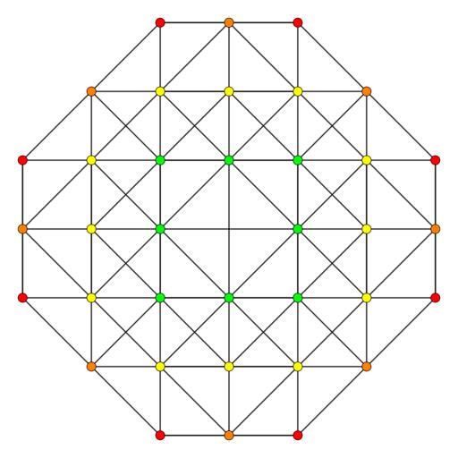 Keywords: 5-simplex t014 A3.svg en en 5-simplex family graph in A3 en Coxeter plane own Tomruen Set of colored Coxeter plane graphs red orange yellow green vertices