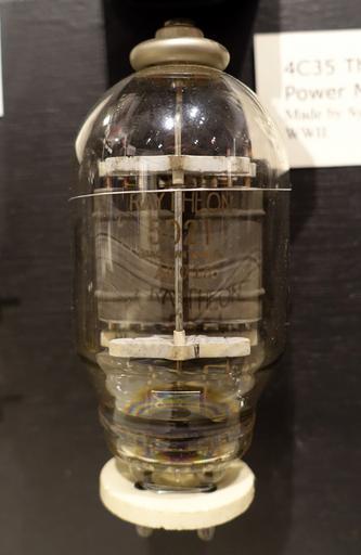 | Keywords: 5D21 Power Tetrode, Raytheon, World War II - National Electronics Museum - DSC00136.JPG en Exhibit in the National Electronics Museum 1745 West Nursery Road Linthicum Maryland USA All items in this museum are unclassified The museum permitted photography without restriction 2014-07-21 14 33 33 own Daderot cc-zero Vacuum tubes in the National Electronics Museum Uploaded with UploadWizard Raytheon vacuum tubes | ||||