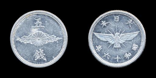Keywords: 5sen-S16.jpg en 5sen-S16 ja 5銭アルミニウム貨幣昭和16年 Own As6673 2009-09-11 Coins in Showa era