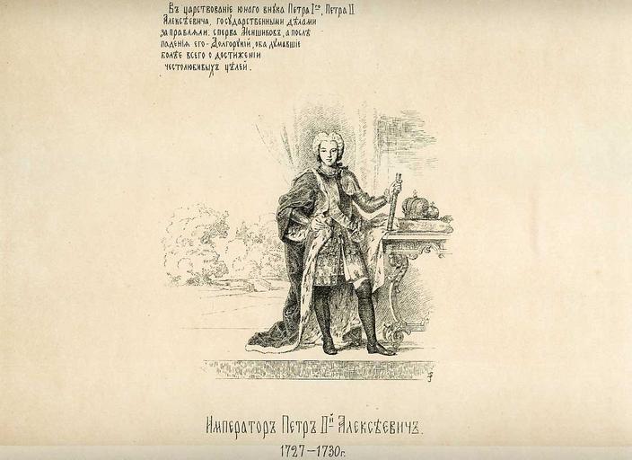 | Keywords: 60 History of the Russian state in the image of its sovereign rulers.jpg ru Импе ато Пет II-й Алексеевич 1727-1730 г <br>В ца ствование юного внука Пет а I-го Пет а II Алексеевича госуда ственными делами зап авляли спе ва еньшиков а после падения его - Долго укий оба думавшие более всего о достижении честолюбивых целей full 60 History of the Russian state in the image of its sovereign rulers - fragment jpg Peter II of Russia | ||||