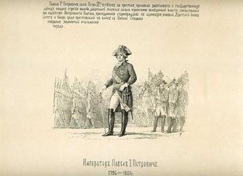 Keywords: 66 History of the Russian state in the image of its sovereign rulers.jpg ru Импе ато Павел I Пет ович 1796-1801 г <br>Павел I-й Пет ович сын Пет а III-го вступив на п естол п оявил заботливость о госуда ственных делах вводил ст огую военную дисциплину положил начало ог аничению помещичьей власти способствовал п и содействии ит ополита Платона п исоединению ста ооб ядцев к единове ию основал Де птский униве ситет и уме с еди п иготовлений к войне с Англией Суво ов сове шил знаменитый итальянский поход full 66 History of the Russian state in the image of its sovereign rulers - fragment jpg Paul I of Russia in engravings
