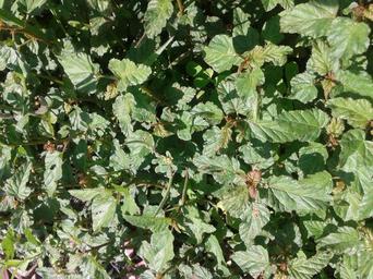 | Keywords: பிண்ணாக்குக் கீரை6.jpg  en Botanical name - Melochia corchorifolia Common name  Chocolate weed According to researches Leaves have Triterpenes Flavonol Glycosides etc Leaves are consumed as a potherb; Dried leaves are source of Protein; Leaves are used to treat Ulcers Abdominal swelling and Headache and Chest pain; Roots and leaves are useful for Snakebites and Wounds; This plant is a source of fibre for making bags ; Stems are used for tying bundles Photo - Thick growth of the weed Melochia corchorifolia ta பிண்ணாக்குக் க ரை இலை க ரையாகச் சமைத்து உண்ணத் தக்கது;வயிற்றுப் புண்ணை இக் க ரை ஆற்றும்; விரை வ க்கத்திற்கு இக் க ரை மருந்து;நெஞ்சு வலிக்கும் இக் க ரையை உண்ணலாம்; பாம்புகடி மருந்தாக வேரும் இலையும் பயன்படுகிறது; பிண்ணாக்குக் க ரையில் புரதச் சத்து உள்ளது; தண்டுப் பகுதிகளைக் கட்டும் கயிறாகப் பயன்படுத்துவர் ;நோய் ந க்கும் சில இரசாயனப் பொருள்களை இத் தாவரம் கொண்டுள்ளது படம் - அடர்ந்து வளர்ந்துநிற்கும் பிண்ணாக்குக் க ரை own Dr S Soundarapandian 2014-03-30 Own research Shot in Chennai Tamilnadu India 4 5 kms off sea-shore ;Latitude-13°02'20 N ; Longitude- 80°13'43 E ; Elevation Melochia corchorifolia Cc-zero |