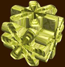 Keywords: mathematica 3d cg parametricplot3d texture torus 輪環 りんかん ドーナツ どーなつ 六芒星 ろくぼうせい 六光星 ろくこうせい 六稜星 ろくりょうせい プログラム コード code program algorithm コード アルゴリズム hexagram geometric sculpture geometricsculpture shape geometry sculpture mapping テクスチャ マッピング 模様 もよう design pattern デザイン パターン graphic グラフィック グラフィクス structure 意匠 構造 symmetry 対称性 たいしょうせい シンメトリー 対称 たいしょう algorithm indoor a = 2; (* center hole size of a torus *) b = 6; (* hexa-torus *) c = 3; (* distance from the center of rotation *) d = 6; (* number of torus *) SetOptions[ParametricPlot3D, PlotRange -> Full, Mesh -> None, Boxed -> False, Axes -> None, PlotPoints -> 400, ImageSize -> 3000, Background -> Darker[Orange, 0.8], PlotStyle -> Directive[Specularity[White, 30], Texture[Import["D:/tmp/71.jpg"]]], TextureCoordinateFunction -> ({#4, #5 b Pi} &), Lighting -> "Neutral"]; f[v_] := Sin[2 Sin[Sin[Sin[v]]]]; x = (a - Cos[t] - f[b s]) Cos[s + Pi/(2 b)]; y = (a - Cos[t] - f[b s]) Sin[s + Pi/(2 b)]; z = Sum[Sin[(2 k - 1) t]/(2 k - 1), {k, 4}] + c; vc = {{0, 0, 1}, {0, 0, -1}, {0, 1, 0}, {0, -1, 0}, {1, 0, 0}, {-1, 0, 0}}; rot = Table[{x, y, z}.RotationMatrix[{{0, 0, 1}, vc[[i]]}], {i, d}]; ParametricPlot3D[rot, {t, 0, 2 Pi}, {s, 0, 2 Pi}] (*--- The Texture *) a = 2; (* center hole size of a torus *) b = 6; (* hexa-torus *) c = 3; (* distance from the center of rotation *) d = 6; (* number of torus *) SetOptions[ParametricPlot3D, PlotRange -> Full, Mesh -> None, Boxed -> False, Axes -> None, PlotPoints -> 400, ImageSize -> 3000, Background -> Darker[Orange, 0.8], PlotStyle -> Directive[Specularity[White, 30], Texture[Import["D:/tmp/71.jpg"]]], TextureCoordinateFunction -> ({#4, #5 b Pi} &), Lighting -> "Neutral"]; f[v_] := Sin[2 Sin[Sin[Sin[v]]]]; x = (a - Cos[t] - f[b s]) Cos[s + Pi/(2 b)]; y = (a - Cos[t] - f[b s]) Sin[s + Pi/(2 b)]; z = Sum[Sin[(2 k - 1) t]/(2 k - 1), {k, 4}] + c; vc = {{0, 0, 1}, {0, 0, -1}, {0, 1, 0}, {0, -1, 0}, {1, 0, 0}, {-1, 0, 0}}; rot = Table[{x, y, z}.RotationMatrix[{{0, 0, 1}, vc[[i]]}], {i, d}]; ParametricPlot3D[rot, {t, 0, 2 Pi}, {s, 0, 2 Pi}] (*--- The Texture *) |
