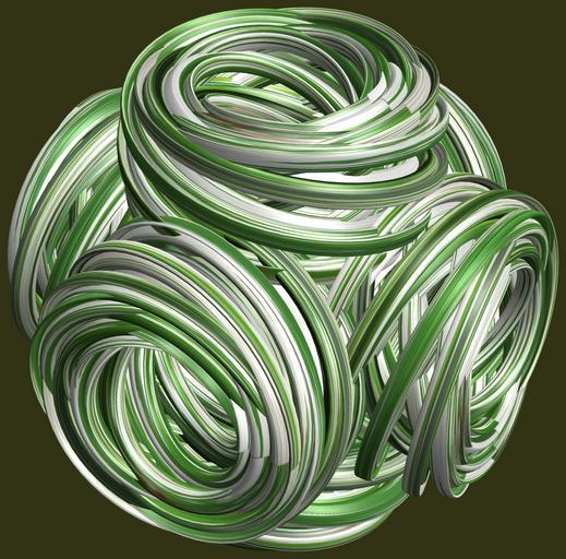 | Keywords: mathematica 3d cg parametricplot3d texture torus code program algorithm プログラム コード アルゴリズム 輪環 りんかん ドーナツ どーなつ トーラス とーらす knot 結び目 むすびめ mapping テクスチャ マッピング 模様 もよう design pattern デザイン パターン graphic グラフィック グラフィクス structure 意匠 構造 symmetry 対称性 たいしょうせい シンメトリー 対称 たいしょう indoor abstract a = 12; (* center hole size of a torus *) b1 = 5; (* the number of angles *) b2 = 4; (* the number of waves *) b3 = 8; (* the number of knots *) c = 18; (* distance from the center of rotation *) d = 6; (* the number of tori *) h1 = 3; (* width of a torus *) h2 = 2; (* width of a torus *) h3 = 7; (* height of cross *) SetOptions[ParametricPlot3D, PlotRange -> Full, Mesh -> None, Boxed -> False, Axes -> None, PlotPoints -> 500, ImageSize -> 3000, Background -> RGBColor[{50, 50, 20}/255], PlotStyle -> Directive[Specularity[White, 50], Texture[Import["D:/tmp/911.jpg"]]], TextureCoordinateFunction -> ({#4, #5 /Pi} &), Lighting -> "Neutral"]; x = (a - h1 Cos[t] + h2 Sin[b1 s]) Cos[b3 s]; y = (a - h1 Cos[t] + h2 Sin[b1 s]) Sin[b3 s]; z = h3 Cos[b1 s] + Sin[b2 t] + c; vc = {{0, 0, 1}, {0, 0, -1}, {0, 1, 0}, {0, -1, 0}, {1, 0, 0}, {-1, 0, 0}}; rm = Table[{x, y, z}.RotationMatrix[{{0, 0, 1}, vc[[i]]}], {i, d}]; ParametricPlot3D[rm, {t, 0, 2 Pi}, {s, 0, 2 Pi}] (*--- The Texture *) a = 12; (* center hole size of a torus *) b1 = 5; (* the number of angles *) b2 = 4; (* the number of waves *) b3 = 8; (* the number of knots *) c = 18; (* distance from the center of rotation *) d = 6; (* the number of tori *) h1 = 3; (* width of a torus *) h2 = 2; (* width of a torus *) h3 = 7; (* height of cross *) SetOptions[ParametricPlot3D, PlotRange -> Full, Mesh -> None, Boxed -> False, Axes -> None, PlotPoints -> 500, ImageSize -> 3000, Background -> RGBColor[{50, 50, 20}/255], PlotStyle -> Directive[Specularity[White, 50], Texture[Import["D:/tmp/911.jpg"]]], TextureCoordinateFunction -> ({#4, #5 /Pi} &), Lighting -> "Neutral"]; x = (a - h1 Cos[t] + h2 Sin[b1 s]) Cos[b3 s]; y = (a - h1 Cos[t] + h2 Sin[b1 s]) Sin[b3 s]; z = h3 Cos[b1 s] + Sin[b2 t] + c; vc = {{0, 0, 1}, {0, 0, -1}, {0, 1, 0}, {0, -1, 0}, {1, 0, 0}, {-1, 0, 0}}; rm = Table[{x, y, z}.RotationMatrix[{{0, 0, 1}, vc[[i]]}], {i, d}]; ParametricPlot3D[rm, {t, 0, 2 Pi}, {s, 0, 2 Pi}] (*--- The Texture *) |