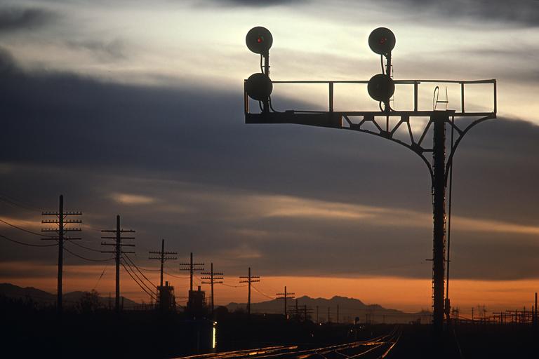 These six photos were taken on the AT&SF looking east, of course, at Daggett, CA in February 1984 (maybe not the same day). This is where the UP tracks cut off to the left and head for Las Vegas and beyond. santafe 6 "early morning" Santa Fe Photos from Roger Puta (31248740606).jpg en The slides are grouped in the Logan Box of Roger's slides I'm starting to scan I'm working on the group labeled early morning The Colorado River bridge shots I recently posted are from that group <br> These six photos were taken on the AT SF looking east of course at Daggett CA in February 1984 maybe not the same day This is where the UP tracks cut off to the left and head for Las Vegas and beyond 2016-11-27 16 22 01 https //www flickr com/people/129679309 N05 railfan 44 https //www flickr com/photos/129679309 N05/31248740606/ User Fæ/Flickr API Puta's AT SF BN and pre BN Railroad Signals Lights and Signs Western Railroads Railroad Photographer USA/Canada Railroad Picture Hall of Fame Block Signals Grade Crossings California Railfans Trains and Dramatic Light Railroad Photography Junction Santa Fe Mel Finzer RogerPuta Photographs by Roger Puta Photos uploaded from Flickr by Fæ using a script 1984 in rail transport in the United States |