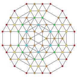 Keywords: 6-simplex t01245 A2.svg en en 6-simplex family graph in A2 en Coxeter plane own Tomruen Set of colored Coxeter plane graphs red orange yellow green vertices