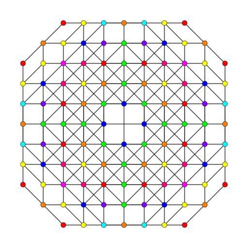 Keywords: 6-simplex t01245 A3.svg en en 6-simplex family graph in A3 en Coxeter plane own Tomruen Set of colored Coxeter plane graphs red orange yellow green vertices