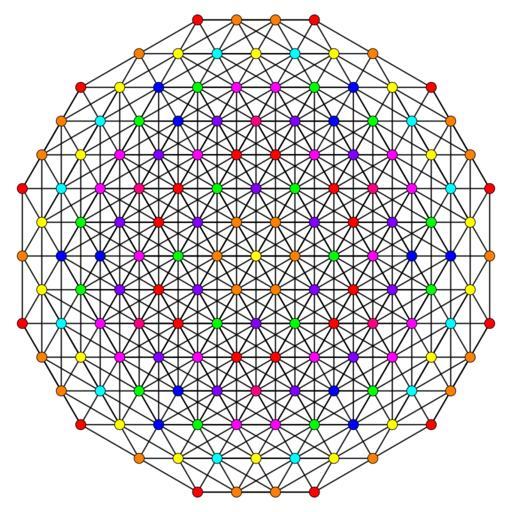 Keywords: 6-simplex t0124 A5.svg en en 6-simplex family graph in A5 en Coxeter plane own Tomruen Set of colored Coxeter plane graphs red orange yellow green vertices