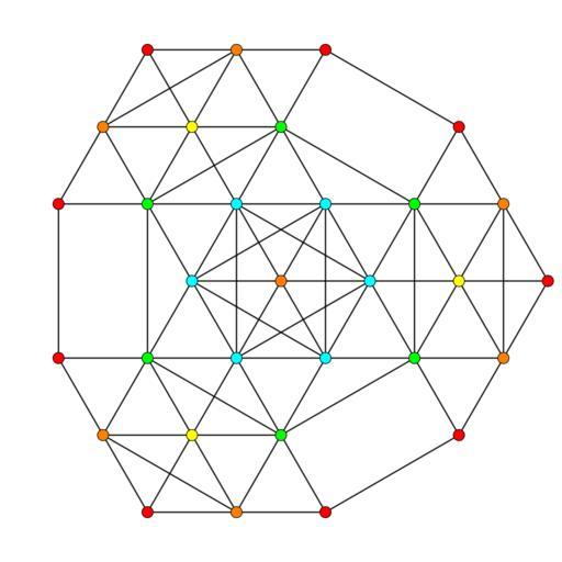 Keywords: 6-simplex t014 A2.svg en en 6-simplex family graph in A2 en Coxeter plane own Tomruen Set of colored Coxeter plane graphs red orange yellow green vertices