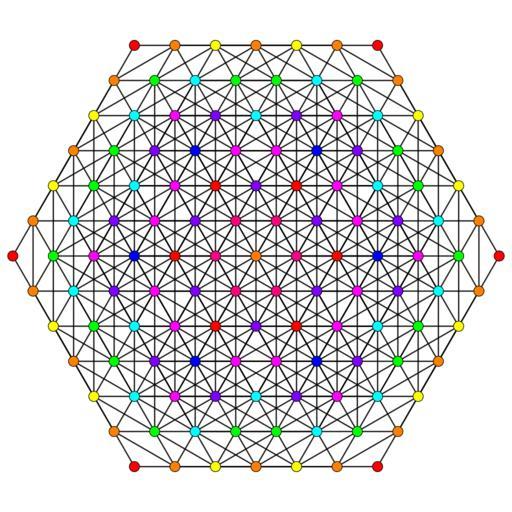 Keywords: 6-simplex t0235 A5.svg en en 6-simplex family graph in A6 Coxeter plane own Tomruen Set of colored Coxeter plane graphs; 127 vertices