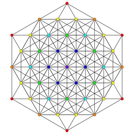 Keywords: 6-simplex t14 A5.svg en en 6-simplex family graph in A2 en Coxeter plane own Tomruen Set of colored Coxeter plane graphs red orange yellow green vertices