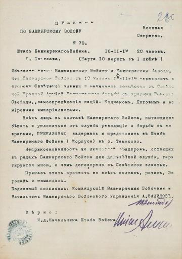 | Keywords: Приказ№70.jpg ru П иказ о пе еходе Башки ского войска на сто ону РККА 1919-02-16 авто заглавие Ахмет-Заки Валиди / сост Г А Хисамов Т Сагитов Г Г Галимова ссылка ответственный место Уфа издательство Китап год 2010 том ст аниц 200 ст аницы 37 978-5-295-05210-1 Штаб Башки ского войска Custom license marker 2014 09 03 PD-RU-exempt Uploaded with UploadWizard History of Bashkortostan Zeki Velidi Togan | ||||