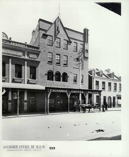 | Keywords: archives state records nsw staterecordsnsw newsouthwales blackandwhite cafe horse and cart horseandcart sydney sussex street sussexstreet people geo:lat=-33.8676486 geo:lat=338676486 geo:lon=151.2035038 geo:lon=1512035038 bristol arms hotel businesses buildings street building architecture outdoor black and white Exchange Coffee Palace, 77 Sussex Street, Sydney Dated: No date Digital ID: 4481_a026_000131 Rights: No known copyright www.records.nsw.gov.au/about-us/rights-and-permissions We'd love to hear from you if you use our photos. Many other photos in our collection are available to view and browse on our website using Photo Investigator. Exchange Coffee Palace, 77 Sussex Street, Sydney Dated: No date Digital ID: 4481_a026_000131 Rights: No known copyright www.records.nsw.gov.au/about-us/rights-and-permissions We'd love to hear from you if you use our photos. Many other photos in our collection are available to view and browse on our website using Photo Investigator. |