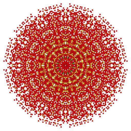 Keywords: 7-cube t0123 B6.svg en 7-cube family graph in B6 en Coxeter plane Vertices only no edges due to file sizes too large own 10/21/10 self Set of colored Coxeter plane graphs red orange yellow green vertices
