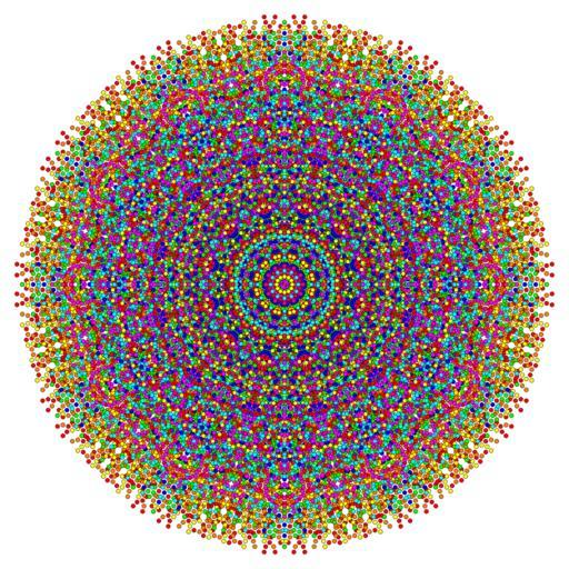 Keywords: 7-cube t13456 B6.svg en 7-cube family graph in B6 en Coxeter plane Vertices only no edges due to file sizes too large own 10/21/10 self 7-polytopes