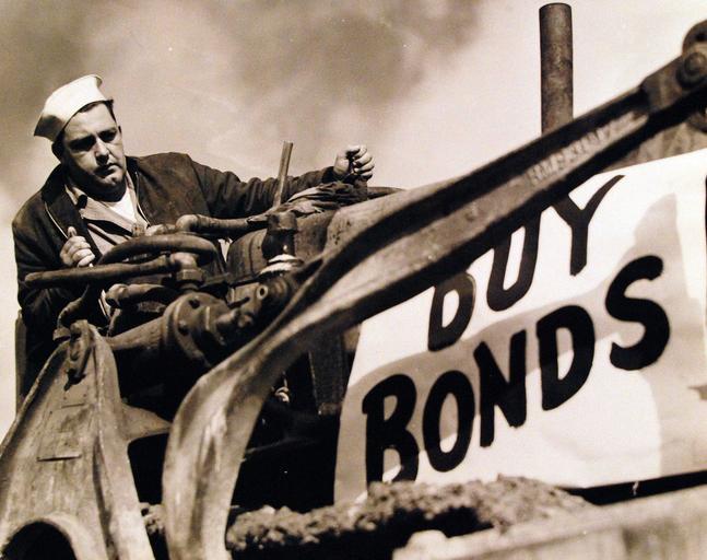 Keywords: 80-CF-8664-8: A U.S. Navy base in Britain. When the Navy presented a plan for officers and men to purchase War Bonds each month by allotting a part of their pay, Machinist’s Mate Leon Lizotte gave powerful impetus to the sale of bonds by posting this sign on his bull dozer. Lizotte is a member of a Navy Construction Battalion whose job is to build, maintain and fight. His battalion was signed up over 90 percent for the regular purchase of bonds, circa WWII. (7/22/2015). 80-CF-8664-8: A U.S. Navy base in Britain. When the Navy presented a plan for officers and men to purchase War Bonds each month by allotting a part of their pay, Machinist’s Mate Leon Lizotte gave powerful impetus to the sale of bonds by posting this sign on his bull dozer. Lizotte is a member of a Navy Construction Battalion whose job is to build, maintain and fight. His battalion was signed up over 90 percent for the regular purchase of bonds, circa WWII. (7/22/2015). |