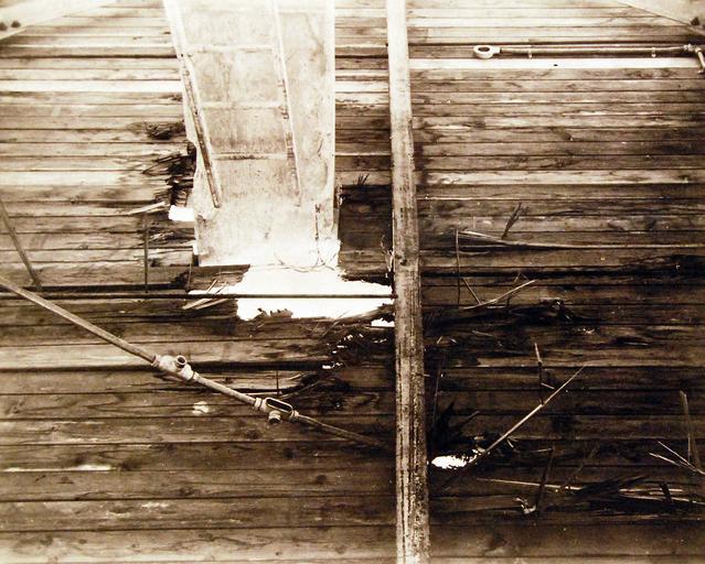 | Keywords: abstract texture outdoor 80-G-2291: Damage at Midway Island following Japanese raid, May 4, 1942. Shell hole in the roof of the laundry. (2015/10/20). 80-G-2291: Damage at Midway Island following Japanese raid, May 4, 1942. Shell hole in the roof of the laundry. (2015/10/20). |