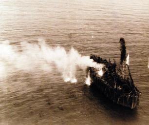 | Keywords: 80-G-304384: Attack on Japanese shipping by Ensign Allen of VPB 117 showing camouflaged Japanese ship burning in Philippine waters. Photograph, December 16, 1944. Official U.S. Navy photograph, now in the collections of the National Archives. (2016/07/19). 80-G-304384: Attack on Japanese shipping by Ensign Allen of VPB 117 showing camouflaged Japanese ship burning in Philippine waters. Photograph, December 16, 1944. Official U.S. Navy photograph, now in the collections of the National Archives. (2016/07/19). |