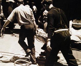 | Keywords: 80-G-32382: Battle of Midway, June 4, 1942. Wounded crew member from USS Yorktown being brown onboard from USS Benham (DD-397) to USS Portland (CA-33) after high-line transfer. A report of unidentified aircraft caused Benham to break away before transferring any of the survivors to the cruiser and they remained on board her until the following morning. (9/15/15). 80-G-32382: Battle of Midway, June 4, 1942. Wounded crew member from USS Yorktown being brown onboard from USS Benham (DD-397) to USS Portland (CA-33) after high-line transfer. A report of unidentified aircraft caused Benham to break away before transferring any of the survivors to the cruiser and they remained on board her until the following morning. (9/15/15). |