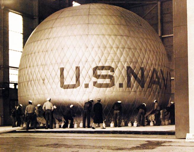 | Keywords: 80-G-40701: Activities at U.S. Navy’s Free-ballooning School at Moffett Field, Sunnyvale, California, 1943. The men tending the sand bags can be seen about their duties. The balloons are still in the hanger. Photograph released February 1943. U.S. Navy Photograph, now in the collections of the National Archives. (2016/06/07). 80-G-40701: Activities at U.S. Navy’s Free-ballooning School at Moffett Field, Sunnyvale, California, 1943. The men tending the sand bags can be seen about their duties. The balloons are still in the hanger. Photograph released February 1943. U.S. Navy Photograph, now in the collections of the National Archives. (2016/06/07). |
