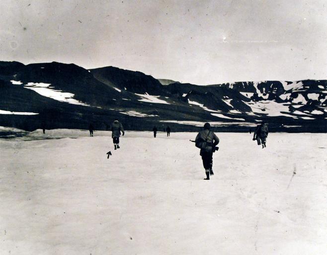 | Keywords: outdoor 80-G-43836: Mixed landing forces of U.S. Coast Guard and Army Commandos, members of the U.S. Navy’s Greenland’s Patrol Expeditionary Force, search the rugged terrain of Greenland for remnants of a German Naval and Military force which were operating a radio base there. One prisoner was captured, others had evacuated. Shown: Coast Guardsmen and soldiers charge in skirmish formation toward the German Army’s radio station and base beyond the hills. The base was discovered by a force of Free Danish hunters, operating under the American Army, on an island off the coast of Greenland. It represented the first attempt by the Germans to establish a foothold in the Western Hemisphere since the start of the war. Captain Carl C. Von Pavlsen, USCG, is seen at the left. Photograph released November 20, 1943. (2015/10/13). 80-G-43836: Mixed landing forces of U.S. Coast Guard and Army Commandos, members of the U.S. Navy’s Greenland’s Patrol Expeditionary Force, search the rugged terrain of Greenland for remnants of a German Naval and Military force which were operating a radio base there. One prisoner was captured, others had evacuated. Shown: Coast Guardsmen and soldiers charge in skirmish formation toward the German Army’s radio station and base beyond the hills. The base was discovered by a force of Free Danish hunters, operating under the American Army, on an island off the coast of Greenland. It represented the first attempt by the Germans to establish a foothold in the Western Hemisphere since the start of the war. Captain Carl C. Von Pavlsen, USCG, is seen at the left. Photograph released November 20, 1943. (2015/10/13). |