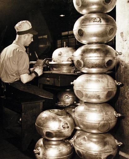 Keywords: indoor ceramic sculpture 80-G-44236: U.S. Naval Torpedo Station, Alexandria, Virginia. Men and women work 24 hours a day turning weapons out. Each has its own engine, packs hundreds of pounds of explosives and costs $12,000. Shown: Fuel flasks are soldered by a workman for submarine type “tin fish”. Photographed received January 14, 1944. Official U.S. Navy Photograph, now in the collections of the National Archives. (2016/11/29). 80-G-44236: U.S. Naval Torpedo Station, Alexandria, Virginia. Men and women work 24 hours a day turning weapons out. Each has its own engine, packs hundreds of pounds of explosives and costs $12,000. Shown: Fuel flasks are soldered by a workman for submarine type “tin fish”. Photographed received January 14, 1944. Official U.S. Navy Photograph, now in the collections of the National Archives. (2016/11/29). |