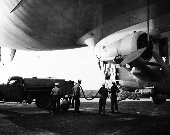 | Keywords: monochrome blackandwhite airplane vehicle aircraft black and white 80-G-55205: Refueling the K-84 after landing at Pici Field, Fortaleza, Brazil. She is the first U.S. blimp to operate on anti-submarine patrol from a South American base. The trip from Lakehurst, New Jersey, to Fortaleza was the longest ever made for a craft of this kind. The slack in the hose permits the blimp to swing with the wind. . Photographed by CPU 6, October 8-14, 1943. (4/28/2015). 80-G-55205: Refueling the K-84 after landing at Pici Field, Fortaleza, Brazil. She is the first U.S. blimp to operate on anti-submarine patrol from a South American base. The trip from Lakehurst, New Jersey, to Fortaleza was the longest ever made for a craft of this kind. The slack in the hose permits the blimp to swing with the wind. . Photographed by CPU 6, October 8-14, 1943. (4/28/2015). |
