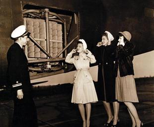 | Keywords: 80-G-701499: U.S. Navy Convair PB4Y-2 “Privateer” with same speaker which talked many a Japanese into surrender will sell bonds for Uncle Sam. Lieutenant Junior Grade Bowers, a member of the ship’s crew explains their working to three pretty ladies at the recent review. Left to right: Miss Nell Torrance; Miss Jerry Jarman; and Miss Robert Patterson. Photograph released November 13, 1945. (7/8/2015). 80-G-701499: U.S. Navy Convair PB4Y-2 “Privateer” with same speaker which talked many a Japanese into surrender will sell bonds for Uncle Sam. Lieutenant Junior Grade Bowers, a member of the ship’s crew explains their working to three pretty ladies at the recent review. Left to right: Miss Nell Torrance; Miss Jerry Jarman; and Miss Robert Patterson. Photograph released November 13, 1945. (7/8/2015). |