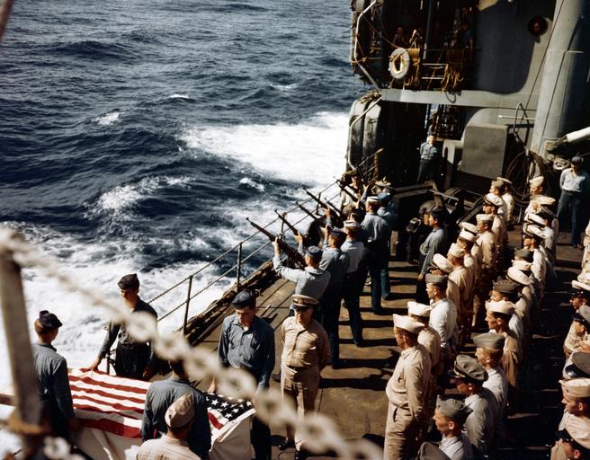 | Keywords: outdoor 80-G-K-3167: Iwo Jima Operation, 1945. Honor guard fires a salute during burial at sea ceremonies for a Marine who died on board while en route from Iwo Jima to Saipan 25-28 February 1945. Hansford was used for casualty evacuation during Iwo Jima campaign Official U.S. Navy Photograph, now in the collections of the National Archives. 80-G-K-3167: Iwo Jima Operation, 1945. Honor guard fires a salute during burial at sea ceremonies for a Marine who died on board while en route from Iwo Jima to Saipan 25-28 February 1945. Hansford was used for casualty evacuation during Iwo Jima campaign Official U.S. Navy Photograph, now in the collections of the National Archives. |