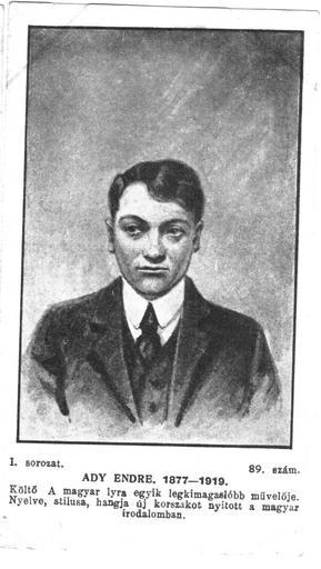 Keywords: 89. Ady Endre.jpg hu A felvétel szkennelés 2012 június 7 én készült A képeslapsorozat korábbi tulajdonosa Bálint János Ócsa volt Az I sor 1 sz 1 sorozat 100 szám jelzetű képeslapok a 101 jelzetű füst albumot töltötték meg A képeslap sorozat képeit az 1920 as években adták ki Az ismeretlen szerző halála óta több mint 70 év telt el A képeslapok hátoldalán ex libris A sorozat képei 1 sz Gróf Széchenyi István 1791 1860 2 sz Deák Ferenc 1803 1876 2 sz 3 sz 4 sz 5 sz 6 sz 7 sz Felsőbükki Nagy Pál 1777 1857 8 sz Báró Eötvös József 1813 1871 9 sz Kossuth Lajos 1802 1894 10 sz Petőfi Sándor 1823 1849 11 sz Liszt Ferenc 1811 1886 12 sz Batthányy Lajos gróf 1806 1849 13 sz II Lajos 1506 1526 14 sz Munkácsy Mihály 1844 1900 15 sz Tisza Kálmán gróf 1830 1902 16 sz Mátyás király 1440 1490 17 sz Arany János 1817 1882 18 sz Tisza István gróf 1865 1918 19 sz Kölcsey Ferenc 1790 1838 20 sz Szinyei Merse Pál 1845 1920 21 sz Jókai Mór 1825 1904 22 sz Mikszáth Kálmán 1849 1910 23 sz Vörösmarty Mihály 1800 1855 24 sz Fadrusz János 1858 1903 25 sz Árpád a Honalapító 26 sz Szent István 975 -1038 27 sz Szent László 1040 - 1095 28 sz Könyves Kálmán 1070 1116 29 sz II Endre 1205 1235 30 sz IV Béla 1206 1270 31 sz Nagy Lajos 32 sz Hunyadi János 33 sz II Rákóczi Ferenc 34 sz Vak Bottyán 35 sz III Károly 36 sz II József 37 sz Madách Imre 38 sz Katona József 39 sz Csokonai Vitéz Mihály 40 sz Lotz Károly 41 sz Pöltenberg Ernő 42 sz Török Ignác 43 sz 44 sz 45 sz 46 sz 47 sz Aulich Lajos 48 sz Damjanich János 49 sz Dessewffy Arisztid 50 sz Lázár Vilmos 51 sz Kiss Ernő 52 sz Schweidel József 53 sz Vécsey Károly 54 sz Táncsics Mihály 55 sz Tompa Mihály 56 sz Rottenbiller Lipót 57 sz Szent Gellért 58 sz Szent Imre 59 sz Kapisztrán János 60 sz Kinizsi Pál 61 sz Tomori Pál 62 sz Zrinyi Miklós 63 sz Gábor Áron 64 sz Bem József 65 sz Bocskay István 66 sz Bethlen Gábor 67 sz József nádor 68 sz Kisfaludy Károly 69 sz Berzsenyi Dániel 70 sz Fáy András 71 sz Semmelweis Ignác 72 sz Egressy Gábor 73 sz Erkel Ferenc 74 sz Szilágyi Dezső 75 sz báró Bánffy Dezső 76 sz Ujházi Ede 77 sz Baross Gábor 78 sz id Wekerle Sándor 79 sz Justh Gyula 80 sz Prohászka Ottokár 81 sz Reményi Ede 82 sz Vámbéry Ármin 83 sz Rákosi Jenő 84 sz Eötvös Károly 85 sz Benczur Gyula 86 sz Blaha Lujza 87 sz Jászai Mari 88 sz Gárdonyi Géza 89 sz Ady Endre 90 sz Gyóni Géza 91 sz Báthori Zsigmond 92 sz Pázmány Péter 93 sz Kisfaludy Sándor 94 sz Goldmark Károly 95 sz Ferenc József 96 sz Erzsébet 97 sz Hermann Ottó 98 sz Lechner Ödön 99 sz Pósa Lajos 100 sz Móra Ferenc 101 jelzet füst album A felvétel és az egész sorozat képei megjelentek Creative Commons alatt a Metapolisz DVD sorozatban 2012-06-07 saját tulajdon author Custom license marker 2012 06 07 PD-old Uploaded with UploadWizard Metapolisz Portraits of Endre Ady Portraits of poets Ady |