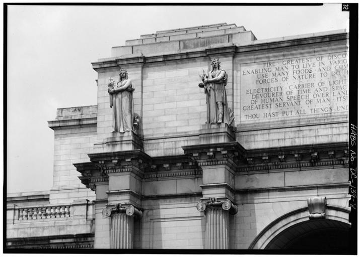| Keywords: 8. DETAIL, WEST END OF MAIN ENTRANCE PAVILION, SHOWING STATUARY AND INSCRIPTION - Union Station030017pv.jpg en Union Station 50 Massachusetts Avenue Northeast Washington District of Columbia DC 8 DETAIL WEST END OF MAIN ENTRANCE PAVILION SHOWING STATUARY AND INSCRIPTION - 5 x 7 in accession number Reproduction Number HABS DC WASH 536--8 Call Number HABS DC WASH 536--8 Repository Library of Congress Prints and Photographs Division Washington D C 20540 USA http //hdl loc gov/loc pnp/pp print LOC-image hhh dc0254/photos 030017p Creator Jack Boucher Rights Advisory No known restrictions on images made by the U S Government; images copied from other sources may be restricted http //www loc gov/rr/print/res/114_habs html 38 895 -77 03667 DC WASH 536--8 Union Station Washington D C Uploaded with UploadWizard |