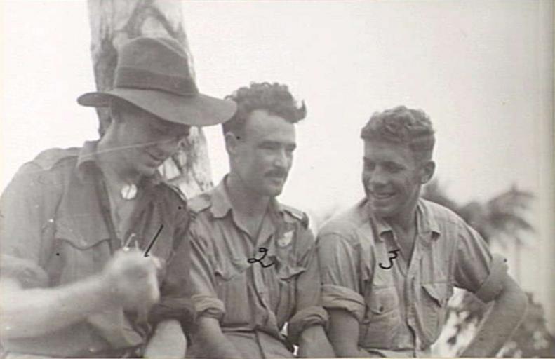 | Keywords: 8 Squadron RAAF aircrew with the Army in New Guinea Dec 1944 AWM 084213.jpg AWM caption SUAIN PLANTATION NEW GUINEA 1944-12-08 PRIVATE J J NOLAN A COMPANY 2/4 INFANTRY BATTALION 1 IN DISCUSSION WITH FLYING OFFICER D F NOLAN 2 AND WARRANT OFFICER J W HAMILTON 3 MEMBERS OF NO 8 SQUADRON RAAF WHO ACCOMPANIED THE PATROL TO GAIN INSIGHT INTO THE INFANTRYMAN'S DIFFICULTIES 084213 1944-12-08 not stated Copyright expired - public domain PD-Australia No 8 Squadron RAAF World War II forces of Australia in New Guinea World War II people of the Australian Army Nolan World War II people of the Royal Australian Air Force |