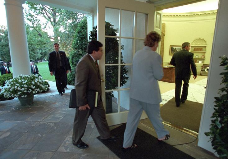 | Keywords: washington d.c. dc u.s. national archives usnationalarchives nara:arcid=5997242 9/11 911 president george w. bush presidentgeorgewbush 2001 george w. bush presidential library georgewbushpresidentiallibrary white house whitehouse oval office ovaloffice karen hughes karenhughes alberton gonzales albertongonzales Original Caption: Counselor Karen Hughes and Counsel Alberto Gonzales follow President George W. Bush into the Oval Office after his return to the White House. U.S. National Archives’ Local Identifier: P7110-08 Created By: President (2001-2009 : Bush). Office of Management and Administration. Office of White House Management. Photography Office. (01/20/2001 - 01/20/2009) From: Photographs Related to the George W. Bush Administration, compiled 01/20/2001 - 01/20/2009 Production Dates: 09/11/2001 Persistent URL: arcweb.archives.gov/arc/action/ExternalIdSearch?id=5997242 Repository: George W. Bush Library (Lewisville, TX) Access Restrictions: Unrestricted Use Restrictions: Unrestricted Original Caption: Counselor Karen Hughes and Counsel Alberto Gonzales follow President George W. Bush into the Oval Office after his return to the White House. U.S. National Archives’ Local Identifier: P7110-08 Created By: President (2001-2009 : Bush). Office of Management and Administration. Office of White House Management. Photography Office. (01/20/2001 - 01/20/2009) From: Photographs Related to the George W. Bush Administration, compiled 01/20/2001 - 01/20/2009 Production Dates: 09/11/2001 Persistent URL: arcweb.archives.gov/arc/action/ExternalIdSearch?id=5997242 Repository: George W. Bush Library (Lewisville, TX) Access Restrictions: Unrestricted Use Restrictions: Unrestricted |