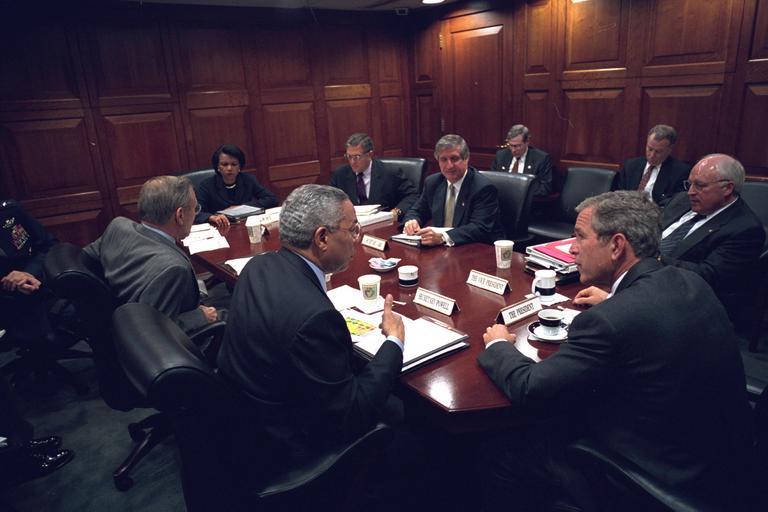 | Keywords: washington d.c. dc u.s. national archives usnationalarchives 9/11 911 president george w. bush presidentgeorgewbush nara:arcid=5997361 2001 george w. bush presidential library georgewbushpresidentiallibrary situation room situationroom national security council nationalsecuritycouncil white house whitehouse indoor Original Caption: President George W. Bush meets with members of his National Security Council inside the Situation Room of the White House. U.S. National Archives’ Local Identifier: P7985-36 Created By: President (2001-2009 : Bush). Office of Management and Administration. Office of White House Management. Photography Office. (01/20/2001 - 01/20/2009) From: Photographs Related to the George W. Bush Administration, compiled 01/20/2001 - 01/20/2009 Production Dates: 10/02/2001 Persistent URL: arcweb.archives.gov/arc/action/ExternalIdSearch?id=5997361 Repository: George W. Bush Library (Lewisville, TX) Access Restrictions: Unrestricted Use Restrictions: Unrestricted Original Caption: President George W. Bush meets with members of his National Security Council inside the Situation Room of the White House. U.S. National Archives’ Local Identifier: P7985-36 Created By: President (2001-2009 : Bush). Office of Management and Administration. Office of White House Management. Photography Office. (01/20/2001 - 01/20/2009) From: Photographs Related to the George W. Bush Administration, compiled 01/20/2001 - 01/20/2009 Production Dates: 10/02/2001 Persistent URL: arcweb.archives.gov/arc/action/ExternalIdSearch?id=5997361 Repository: George W. Bush Library (Lewisville, TX) Access Restrictions: Unrestricted Use Restrictions: Unrestricted |