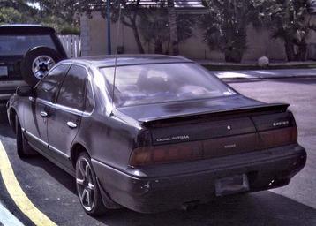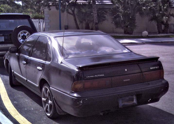 Keywords: '92-'93 Nissan Laurel Altima -- Rear.JPG 1992-1993 Nissan Laurel Altima photographed in Nassau Bahamas Bull-Doser's Lost Photographs Nissan Cefiro A31 Own 2006-09-01 Bull-Doser wikipedia en All Rights Released Contrast and shadow enhancement plus wide-radius unsharp mask to improve punch/local-contrast Then reduced over-processed look on upper section of car only |