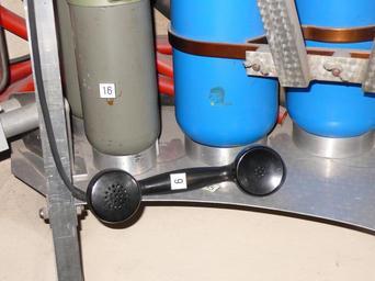 Keywords: 9 Bathyscaph Trieste German Museum Munich.JPG Bathyscaph Trieste German Museum Munich 1 Schalttafel für die Außenbeleuchtung 3 Scheinwerfer Quecksilberdampflampen an der Unterseite des Schwimmkörpers und 2 Glühlampen in Stahlgehäusen am Beobachtungsfenster der Tauchkugel und im Vorzimmer Ateliers de Constructions Mécaniques de Vevey S A Vevey Schweiz 2 Schalttafel zur Betätigung der Ballastschleusen und anderen Einrichtungen Ateliers de Constructions Mécaniques de Vevey S A Vevey Schweiz 3 Schalttafel für die Antriebsmotoren Ateliers de Constructions Mécaniques de Vevey S A Vevey Schweiz 4 Reservematerial 5 Chronometer des Fabrikats wie es auch bei den Ballonflügen in die Stratosphäre 1931 und 1932 von Auguste Piccard benutzt wurde Ateliers de Constructions Mécaniques de Vevey S A Vevey Schweiz 6 Totalisator zur Kontrolle der Ballastabgabe Mit zwei Sekunden-Zählwerken die nur laufen wenn der Strom der zugehörigen Ballastschleuse unterbrochen ist und Ballast abgegeben wird Da der Ballastausfluß jeder Schleuse ziemlich genau 10 kg je Sekunde beträgt kann man sofort erkennen wie viel Ballast verbraucht worden ist Langines Compagnie des Mantres Longines Francillon S A St Imier Schweiz 7 Manometer die zur Ermittlung der Tauchtiefe den Wasserdruck messen Haenni Jegenstorf Schweiz 8 Hochdruckventil 1200 kp/qcm Maschinenfabrik Burckhardt Aktiengesellschaft Basel Schweiz 9 Wasserdichter und explosionsgeschützter Fernsprechapparat für Batteriebetrieb mit einer Buchse im Schwimmkörper so dass nach dem Auftauchen eine Kabelverbindung mit Begleitfahrzeugen hergestellt und so beim Tauchen bis in geringe Tiefen aufrechterhalten werden kann Società Italiana Telecomunicazioni Siemens s p a Milano Italien 10 Automatische Filmkamera Bolex H 16 Reflex Paillard S A Ste Croix Schweiz 11 Photographische Kamera Exakta Ihagee Kamerawerk A G Dresden 12 Anzeigeinstrument des Nickelwiederstandsthermometers zur Messung der Temperatur des Tragebenzins Bosco Co S p a Torino Italien 13 Pendel zur Bestimmung der Trimmlage 14 Zink-Silber-Akkumulatoren zum Betrieb elektrischer Geräte der Ballastschleusen der Haltemagnete der Antriebsmotoren der Ventilatoren der Scheinwerfer Lampen und Innenbeleuchtung 330 Zellen zu je 1 5 Volt Electrona S A Boudry Schweiz 15 Pressluftflaschen zum Ausblasen des Wassers aus Vorzimmer und Einsteigeschacht AGA A G Pratteln-Zürich-Genf 16 Sauerstoff-Flaschen der Belüftungsanlage um den Sauerstoffgehalt der Atemluft in der Tauchkugel zu erneuern AGA A G Pratteln-Zürich-Genf 17 Natronpatronen Aus den Druckflaschen in einem Injektor strömender Sauerstoff saugt Raumluft durch diese drei Patronen Kohlendioxyd wird absorbiert und die gereinigte Luft gelangt gemischt mit Sauerstoff im Kreislauf in die Kabine zurück Drägerwerk Lübeck 18 Schalttafel Ateliers de Constructions Mécaniques de Vevey S A Vevey Schweiz 19 Unterwassertelefon nach Russel Lewis Laboratorium für Unterwasserschall New London Connecticut USA mit dem auch während des Tauchens eine Sprech- oder Signalverbindung mit dem Begleitschiff aufrechterhalten werden kann Die beim Sprechen auf das Mikrofon auftreffenden Schallwellen werden im Bereich von 300 bis 3000 Hertz in elektrische Schwingungen und nach Verstärkung zur à bertragung im Wasser in Unterschallschwingungen von 8387 bis 11087 Hertz umgewandelt Einseitenband-Modulation mit unterdrücktem Träger Beim Empfang findet der umgekehrte Vorgang statt 20 Echolot 21 Log zum messen der Vertikalgeschwindigkeit 22 Innenbeleuchtung mit 6 kleinen Glühlampen zur Beobachtung der Instrumente Sie beleuchten die weiß gestrichene Decke der Tauchkugel und sind gegen die Besatzung abgeschirmt um Blendwirkung zu vermeiden 23 Traggerüste für die Geräteausstattung Verformungen der Kugel durch Temperaturänderungen werden von Schraubfedern aufgenommen die in Bohrungen am oberen Ende der Stangen sitzen und einen Messingkolben gegen die Kugelwand drücken Ateliers de Constructions Mécaniques de Vevey S A Vevey Schweiz 24 Sitze 25 Fußboden der den Keller abdeckt Im Keller werden Alkalipatronen zur Erneuerung der Atemluft Druckgasflaschen zum Ausblasen des Einsteigschachtes nach einer Tauchfahrt und anderes Reservematerial aufbewahrt 26 Tauchkugel Fried Krupp Essen 27 Einsteigeluke 28 Hauptbeobachtungsfenster 29 Tonbandgerät Kudelski Enregistreur autonomes Nagra Paudex-Lausanne own Reinraum 2010-09-19 Trieste submarine 1953 |