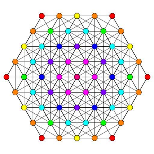 MAKE A MEME View Large Image 9-demicube t06 A5.svg en 9-demicube family polytopes in en Coxeter plane symmetry own 11/27/10 User Tomruen Set of colored Coxeter plane graphs; 61 vertices